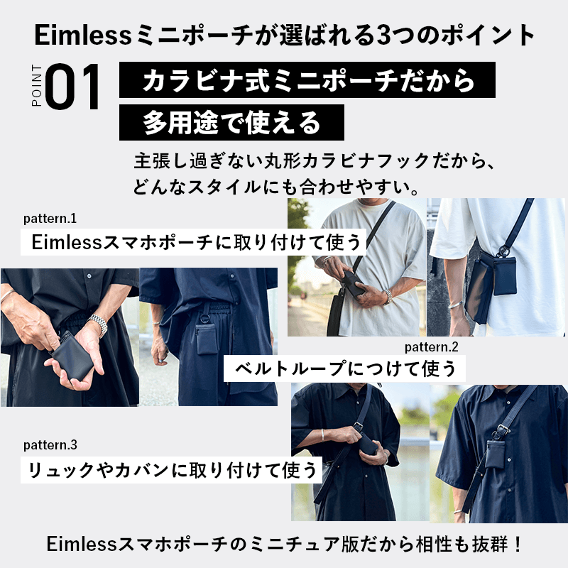 本当に必要なものだけ、ひとまとめ!カラビナ付きEimlessミニポーチ